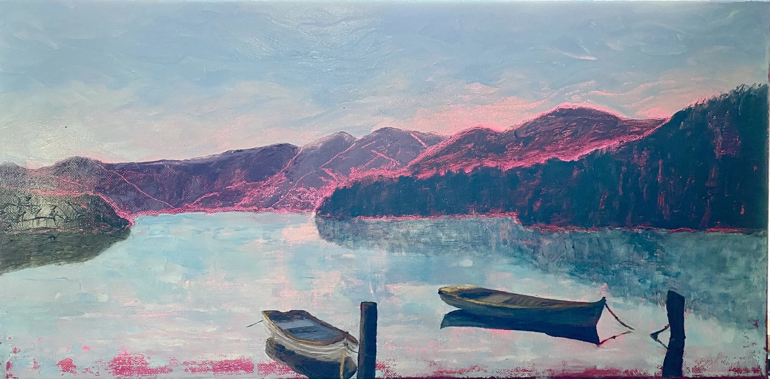 The space between our striving and God’s miracle is all too often subtle, quiet, and at times feels empty. The boats wait and then Jesus shows up, notices the empty boats, and beckons for one of the fisherman, a disciple, to cast the nets again. Simon gives a respectful rebuttal but decides to say ‘yes’ in faith because Jesus spoke. The boats, water, and mountains are surrounded by light; it could be sunrise or sunset or just the space between dawn and dusk. The painting is an invitation into the liminal space of waiting. Whether in light or dark, whether nets are full or empty; one thing remains true, everything changes when Jesus comes.